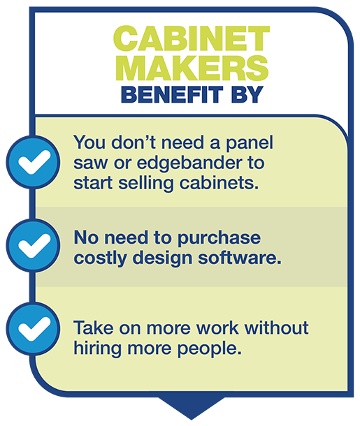 Create your account and get instantly connected to a local, trusted cabinet manufacturer. No fees. No software to install.