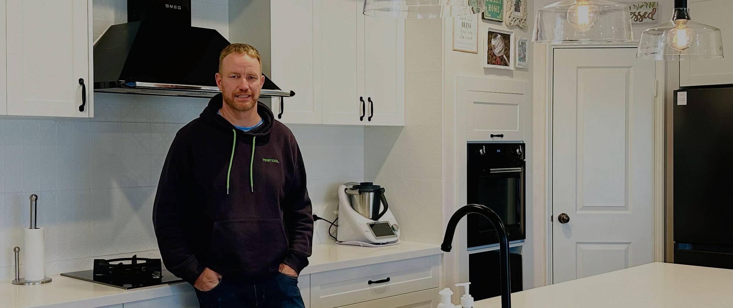 "I had done some cabinet making a long time ago and my father was very handy and showed me a lot about building, and building neatly and efficiently” explains Damien on his career shift. “Initially, I thought I could offer help to some friends to install their kitchen and that spread. I ended up doing a few kitchens while stood down from flying.”